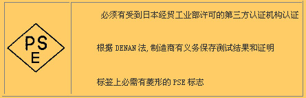 日本的DENTORL法(電器裝置和材料控制法)規(guī)定,498種產(chǎn)品進入日本市場必須通過安全認證。其中,112種A類產(chǎn)品應取得菱行認證,340種B類產(chǎn)品應取得圓行認證。PSE目錄清單!